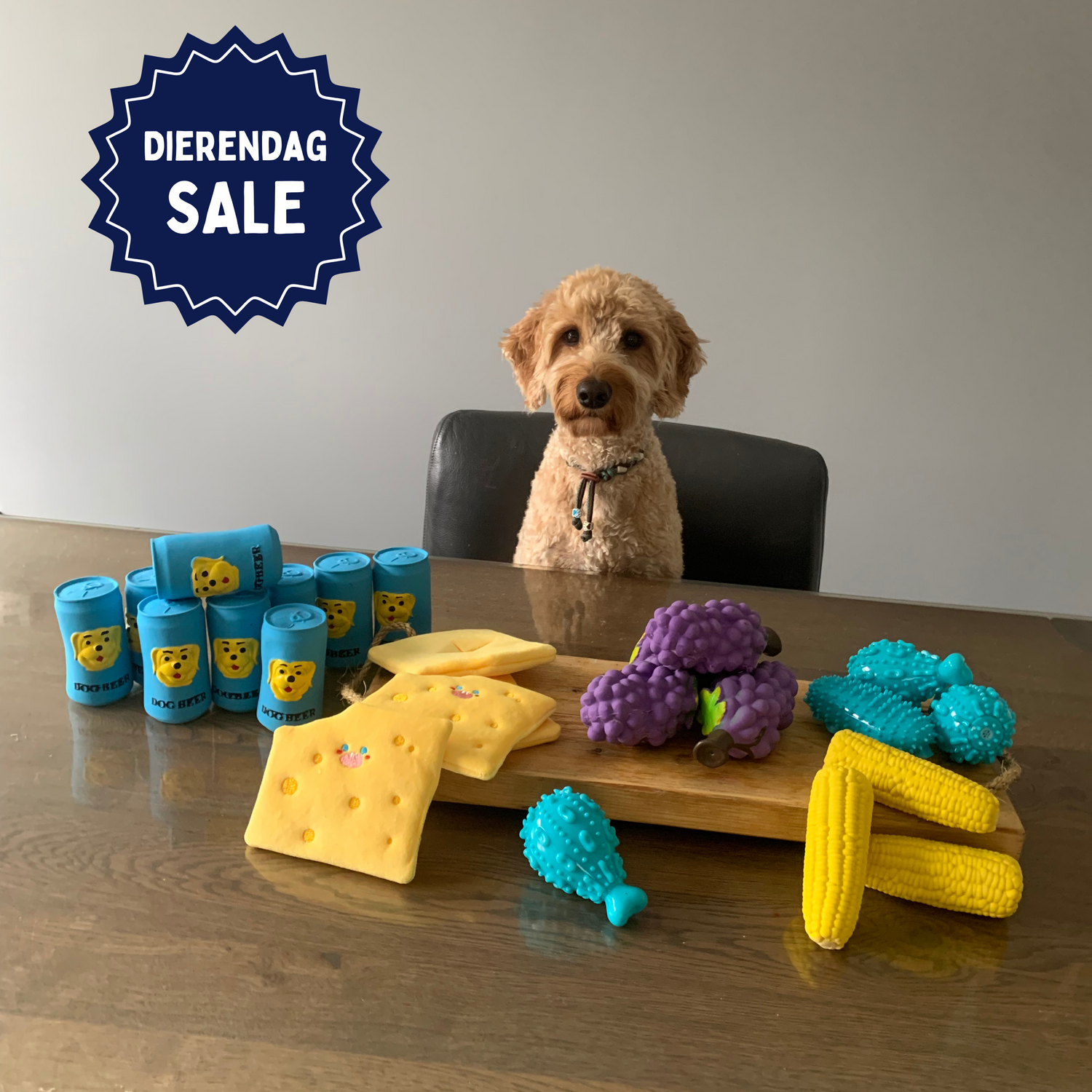 Op Dierendag 2025 zetten we alle honden en baasjes extra in het zonnetje. Daarom ontvang je met de kortingscode "Dierendag2025" maar liefst 10% korting op al ons hondenspeelgoed en hondenaccessoires. Van knuffels en kauwspeeltjes tot handige hondenpootreinigers – verwen je trouwe viervoeter met de leukste producten uit onze webshop.