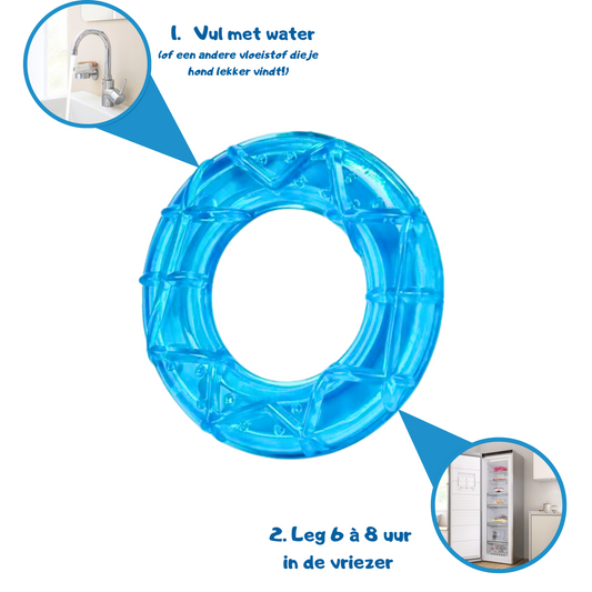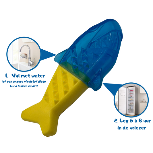 - Bijten op hondenspeelgoed met koelelement, zoals een speeltje dat je in de vriezer kunt leggen.